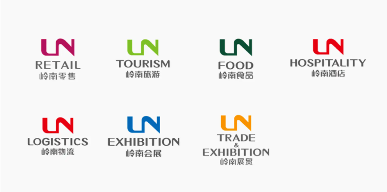 集團(tuán)旗下的子品牌采用了與集團(tuán)一樣的「LN」連字圖標(biāo),不同的是,子品牌的圖標(biāo)以不同的顏色區(qū)分,并且沒(méi)有紅色的旗幟圖形背景。